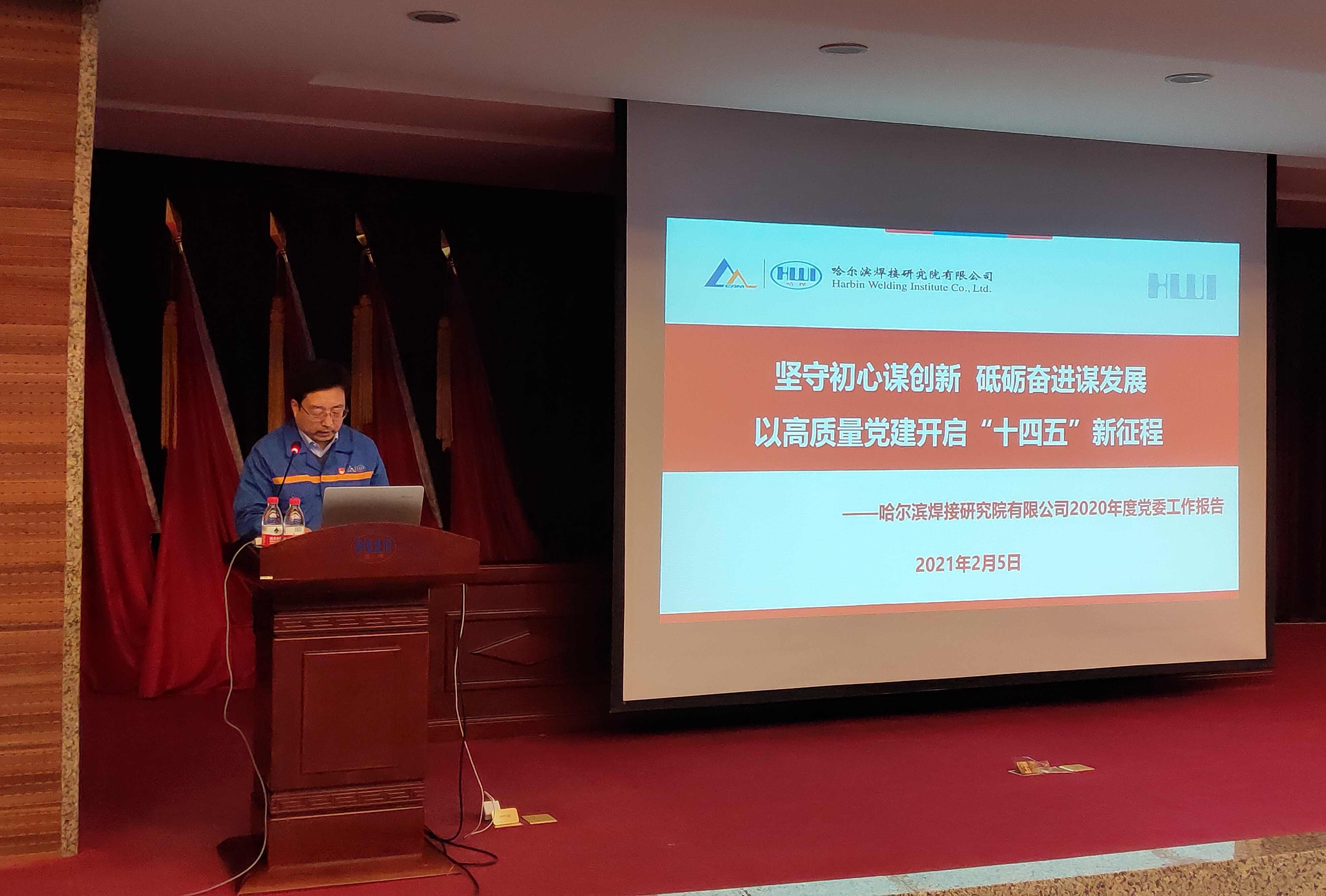 2021年2月5日,哈焊院2021年度黨委工作會議在學術(shù)報告廳召開。會議由黨委副書記、紀委書記儲繼君同志主持,哈焊院領(lǐng)導班子成員、中層干部、黨支部書記、部分職工代表參加會議。