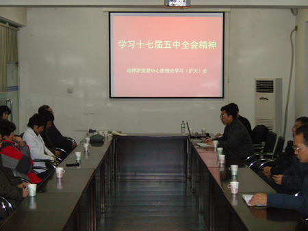 2010年11月15日,所黨委召開了中心組理論學(xué)習(xí)(擴大)會,會議邀請省委黨校馬邊防教授結(jié)合十七屆五中全會精神做關(guān)于十二五宏觀經(jīng)濟(jì)形勢報告。所領(lǐng)導(dǎo)班子成員、中層干部、支部書記及部分管理部門人員40余人參加了會議。黨委書記楊玉亭主持會議。