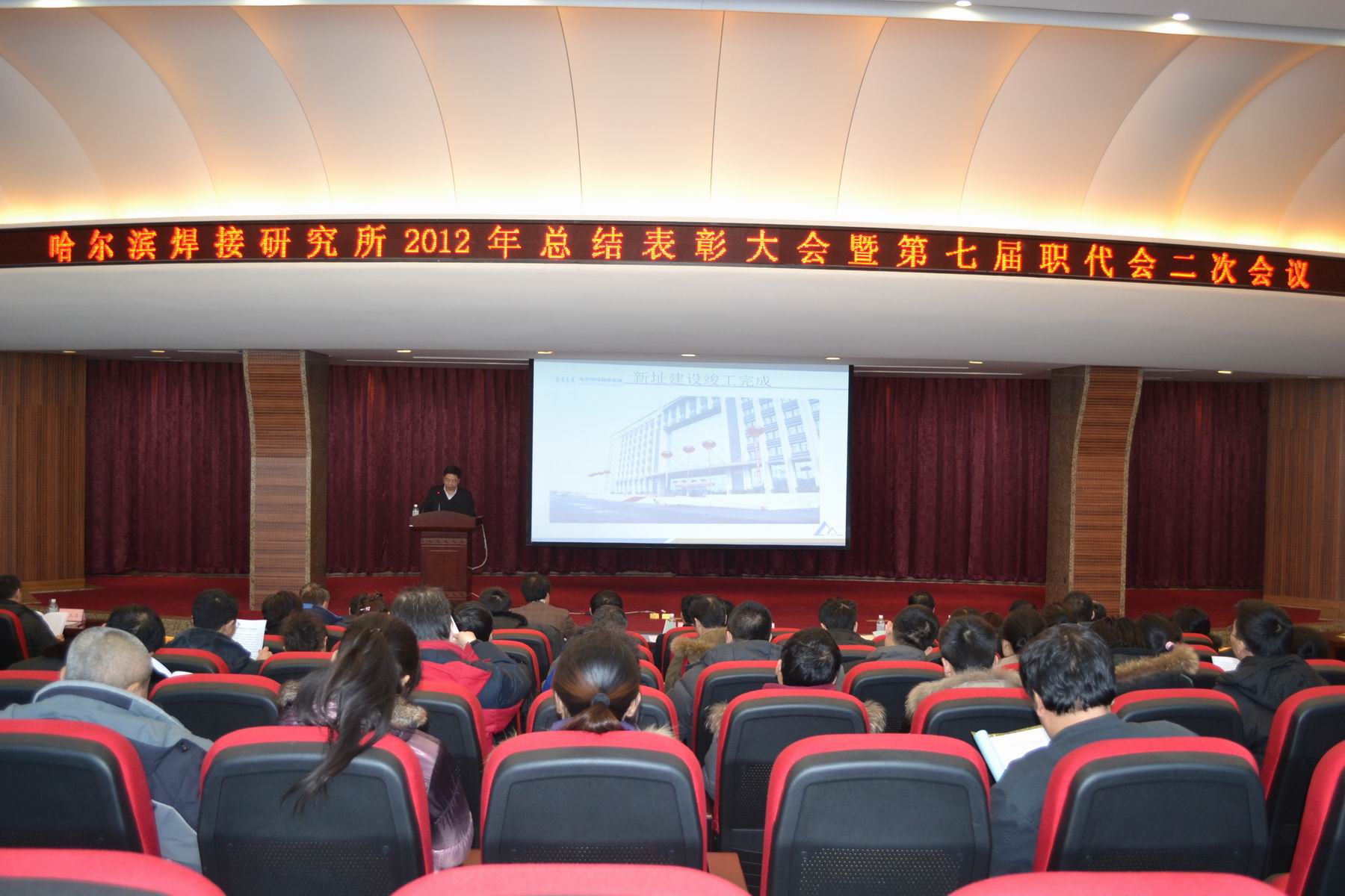 2013年2月4日在所輔樓學(xué)術(shù)報(bào)告廳召開(kāi)了哈焊所2012年總結(jié)表彰大會(huì)暨第七屆職工代表大會(huì)二次會(huì)議。大會(huì)由黨委書(shū)記楊玉亭同志主持,職工代表、列席代表及全體職工參加了會(huì)議。