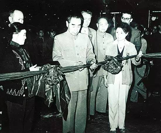 周恩來(lái)總理為包鋼一號(hào)高爐出鐵剪彩