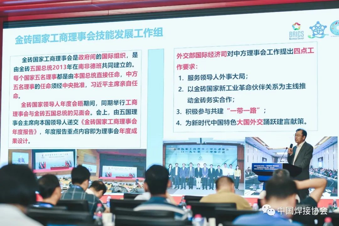 北京嘉克新興科技有限公司董事長劉振英博士做題為《深化金磚國家人才培養(yǎng)成果與展望》的報告。報告從金磚大賽的發(fā)展歷程,主辦承辦的各類賽事,推進國家技能訓練基地建設、實施“技能護照”計劃、舉辦技能發(fā)展與技術(shù)創(chuàng)新系列大講堂、成立未來技能發(fā)展與技術(shù)創(chuàng)新研究院、緊密與國際組織合作等幾個方面進行了詳細的介紹,這些工作扎實有效的提高了我國焊接事業(yè)在國際舞臺的影響力與話語權(quán)。
