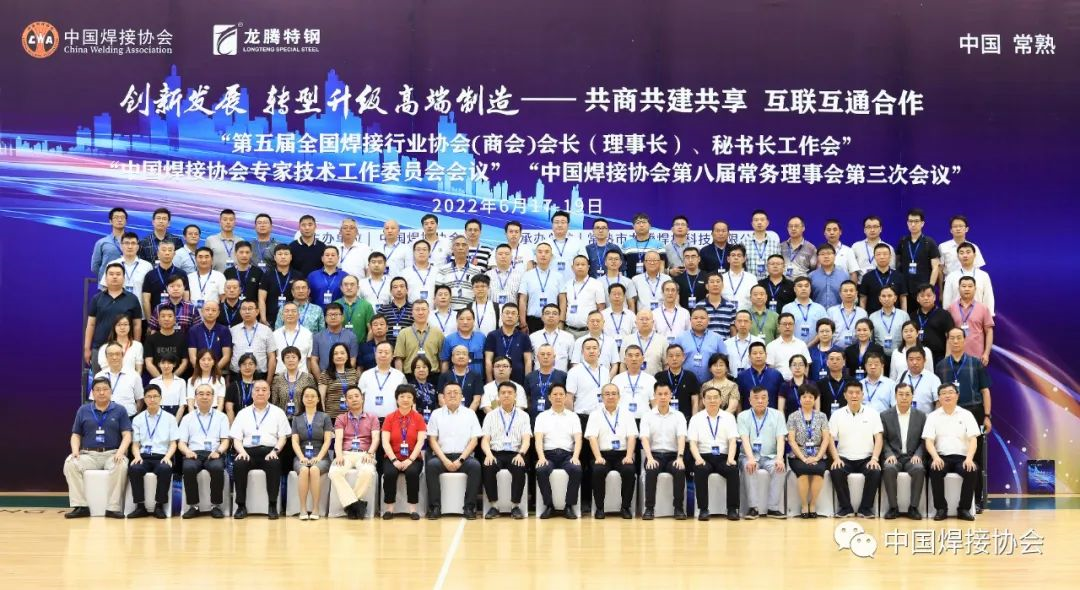 2022年6月18日,由中國焊接協(xié)會主辦,常熟市龍騰焊材科技有限公司承辦的第五屆全國焊接行業(yè)協(xié)會(商會)會長(理事長)、秘書長工作會議,中國焊接協(xié)會專家技術(shù)工作委員會會議在常熟召開。常熟市人民政府副市長李漢中、中國焊接協(xié)會副會長兼秘書長李連勝、常熟市龍騰特種鋼有限公司黨委書記、董事長季丙元,中國焊接協(xié)會副會長龍偉民、樊險峰、劉長城、葉德平、謝偉新、張寧紅,中國焊接協(xié)會表面工程與增材制造工作委員會理事長劉振英、中國焊接協(xié)會監(jiān)事王春生、中國焊接協(xié)會副秘書長林曉輝、方乃文等全國各省市地方行業(yè)組織,中國焊接協(xié)會分支機構(gòu)理事長、秘書長,以及國內(nèi)焊接行業(yè)骨干企業(yè)領導、專家共計134人出席了本次會議。本次會議主題為“創(chuàng)新發(fā)展 轉(zhuǎn)型升級 高端制造”。