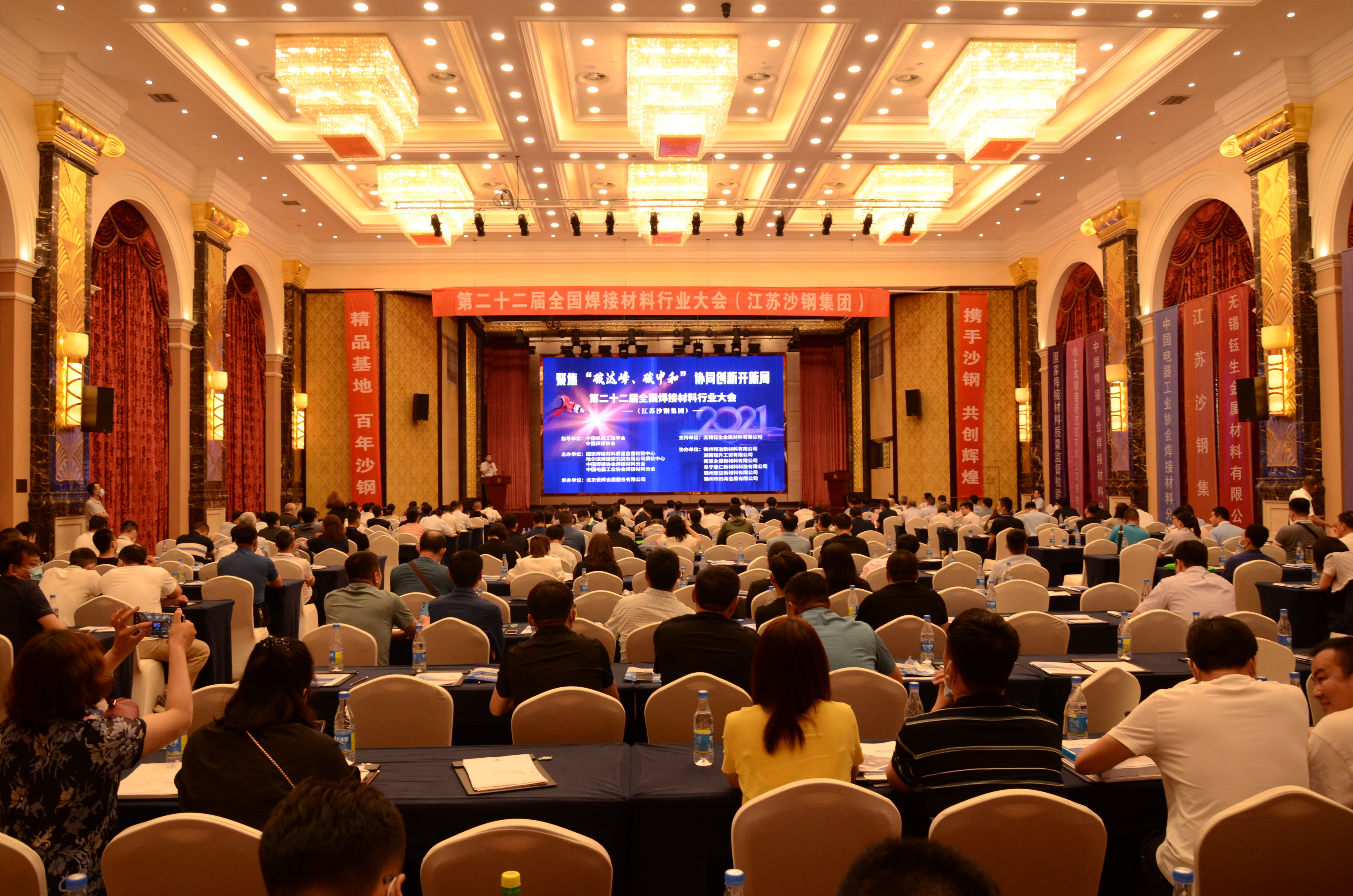 2021年6月13日至15日,由國家焊接材料質(zhì)量監(jiān)督檢驗中心(哈爾濱焊接研究院有限公司質(zhì)檢中心)、中國焊接協(xié)會焊接材料分會、中國電器工業(yè)協(xié)會焊接材料分會共同主辦的“第二十二屆全國焊接材料行業(yè)大會”在江蘇省南京市成功召開。來自我國焊接材料制造企業(yè)、原輔材料及焊材生產(chǎn)設(shè)備供應(yīng)企業(yè)、焊接材料應(yīng)用單位及大學(xué)、科研院所等200余家單位的近400名代表參加了會議。中國焊接協(xié)會副會長兼焊材分會理事長、哈爾濱焊接研究院有限公司黨委書記、董事長楊玉亭,中國電器工業(yè)協(xié)會副秘書長王琨,中國焊接協(xié)會副會長兼秘書長、哈爾濱焊接研究院有限公司副書記、副董事長李連勝,中國電器工業(yè)協(xié)會焊材分會理事長、哈爾濱焊接研究院有限公司黨委副書記、紀(jì)委書記儲繼君,中國焊接協(xié)會副秘書長兼焊材分會副理事長和秘書長、中國電器工業(yè)協(xié)會焊材分會秘書長、國家焊接材料質(zhì)量監(jiān)督檢驗中心常務(wù)副主任呂曉春,四川大西洋焊接材料股份有限公司總經(jīng)理張曉柏、總工程師蔣勇,天津市金橋焊材集團股份有限公司副總經(jīng)理吳振祥,天津大橋焊材集團有限公司總工程師李典釗,山東索力得焊材股份有限公司董事長柴月華、副總經(jīng)理關(guān)常勇,哈焊所華通(常州)焊業(yè)股份有限公司副總經(jīng)理李振華,哈爾濱威爾焊接有限責(zé)任公司總經(jīng)理陳波,江蘇沙鋼集團有限公司沙鋼鋼鐵研究院院長麻晗等領(lǐng)導(dǎo)蒞臨了本次大會。