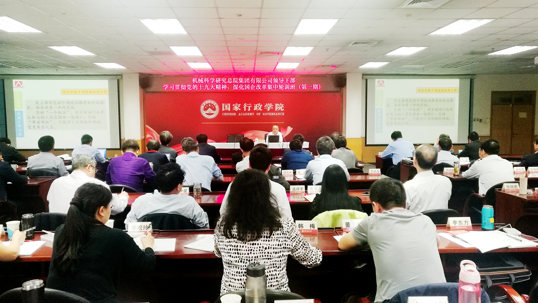 4月16日至4月20日,機(jī)械總院集團(tuán)領(lǐng)導(dǎo)干部學(xué)習(xí)貫徹習(xí)近平新時(shí)代中國特色社會(huì)主義思想和黨的十九大精神、深化國企改革集中輪訓(xùn)班(第一期)在國家行政學(xué)院成功舉辦。機(jī)械總院集團(tuán)黨委書記、董事長、總經(jīng)理王德成,各單位董事長、黨委書記、總經(jīng)理,集團(tuán)總部各職能部門主要負(fù)責(zé)人以及各單位黨群、人事、紀(jì)檢部門主要負(fù)責(zé)人參加了培訓(xùn)。