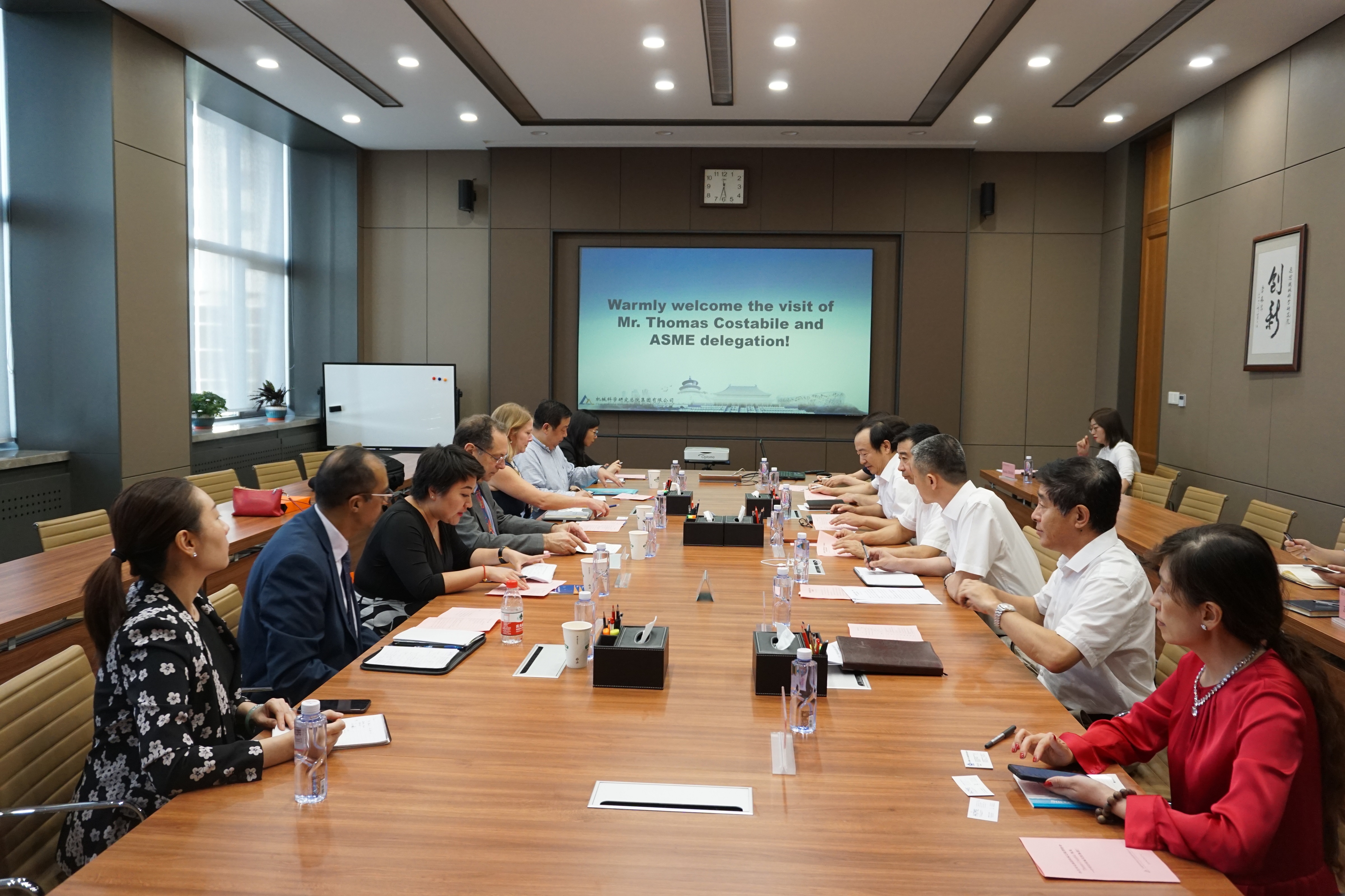在隨后的座談中,李建友副總經理介紹了總院集團深耕機械工業(yè)標準化數(shù)十載所收獲的成果和取得的廣泛社會效益,表示總院集團行業(yè)工作圍繞高質量發(fā)展命題,在集團標準化工作、認證檢測一體化發(fā)展以及裝備制造、清潔能源、科技戰(zhàn)略咨詢等領域擁有深厚的技術積累,期望在標準化服務、智能制造、機器人和清潔能源等方面深挖合作潛力。Thomas Costabile秘書長介紹了ASME組織形式、標準化工作模式、協(xié)會經營情況以及諸多培訓和發(fā)展計劃,表示盡管當前中美貿易摩擦帶面臨若干不確定性因素,仍期望和機械總院集團在面向新興領域開展建設性合作。