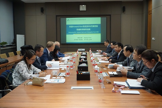 李建友副總經(jīng)理對(duì)霍華德•科爾先生一行的到來表示熱烈歡迎,并重點(diǎn)圍繞集團(tuán)在基礎(chǔ)共性技術(shù)研究、標(biāo)準(zhǔn)化、檢驗(yàn)檢測(cè)、認(rèn)證認(rèn)可、行業(yè)服務(wù)等方面業(yè)務(wù),以及在支撐中國裝備制造業(yè)高質(zhì)量發(fā)展中發(fā)揮的重要作用進(jìn)行了系統(tǒng)介紹?;羧A德•科爾對(duì)機(jī)械總院集團(tuán)的熱情接待表示感謝。他表示,自今年9月李建友副總經(jīng)理率團(tuán)訪問BSI以來,機(jī)械總院集團(tuán)與BSI的合作被提到新的高度,希望雙方重點(diǎn)圍繞設(shè)施管理、增材制造等方面形成全方位的務(wù)實(shí)合作,實(shí)現(xiàn)在標(biāo)準(zhǔn)、檢測(cè)、認(rèn)證等方面的共贏發(fā)展。雙方還就2020年共同舉辦中英標(biāo)準(zhǔn)化高峰論壇等事宜進(jìn)行了深入探討。