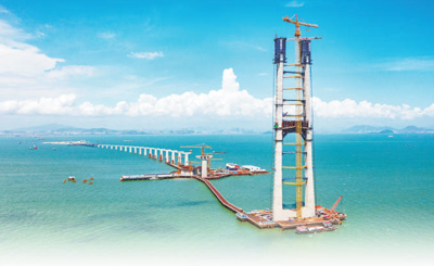 伶仃洋大橋東索塔施工現(xiàn)場。