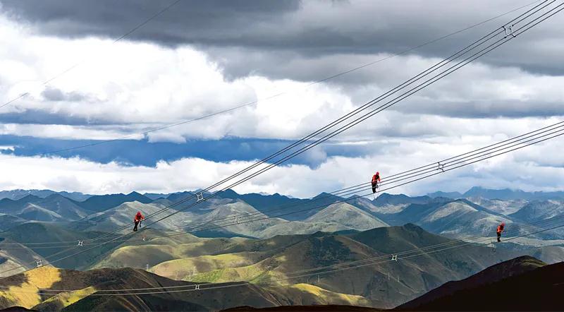 近年來,中央企業(yè)把加強黨的領導和完善公司治理統(tǒng)一起來,在維護國家戰(zhàn)略安全、保障和改善民生等方面更加擔當作為。圖為2021年6月11日,國家電網四川送變電公司黨員先鋒隊員對四川省甘孜州兩河口水電站500千伏送出工程線路進行消缺驗收。 國務院國資委供圖 劉湘釩/攝