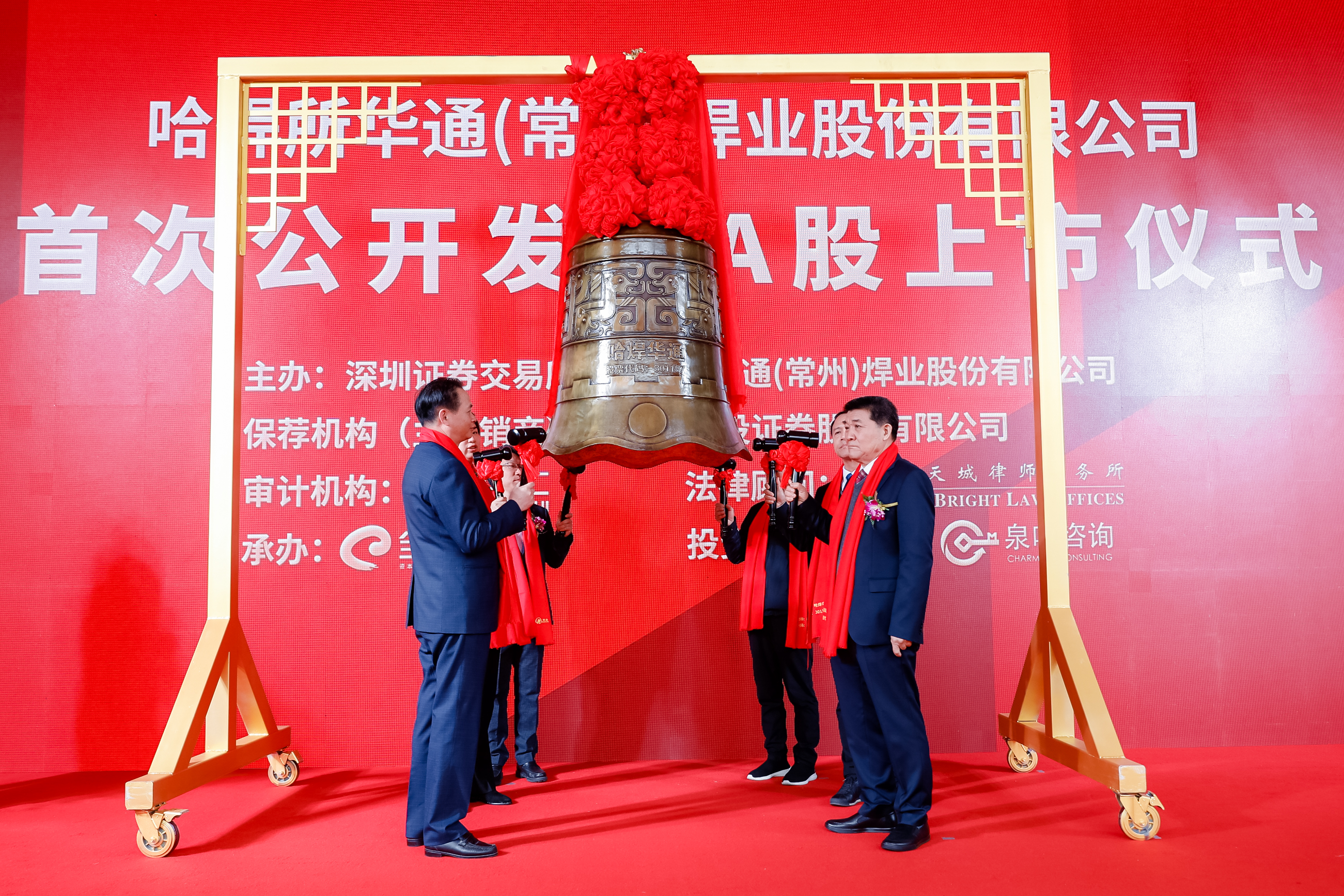3月22日上午,哈焊所華通(常州)焊業(yè)股份有限公司(簡(jiǎn)稱:哈焊華通,股票代碼:301137)正式在深圳證券交易所創(chuàng)業(yè)板上市,上市儀式以云直播方式在常州舉行,這標(biāo)志著作為中國(guó)機(jī)械總院集團(tuán)首家IPO上市公司,哈焊華通開始踏上資本市場(chǎng)的大舞臺(tái),步入新的發(fā)展里程。中國(guó)機(jī)械總院黨委書記、董事長(zhǎng)王德成,深圳證券交易所黨委委員、副總經(jīng)理李鳴鐘,常州市委書記陳金虎,中信建投投行董事總經(jīng)理王晨寧,哈焊華通董事長(zhǎng)楊玉亭、總經(jīng)理周全法等出席上市儀式,共同見證這一歷史時(shí)刻。