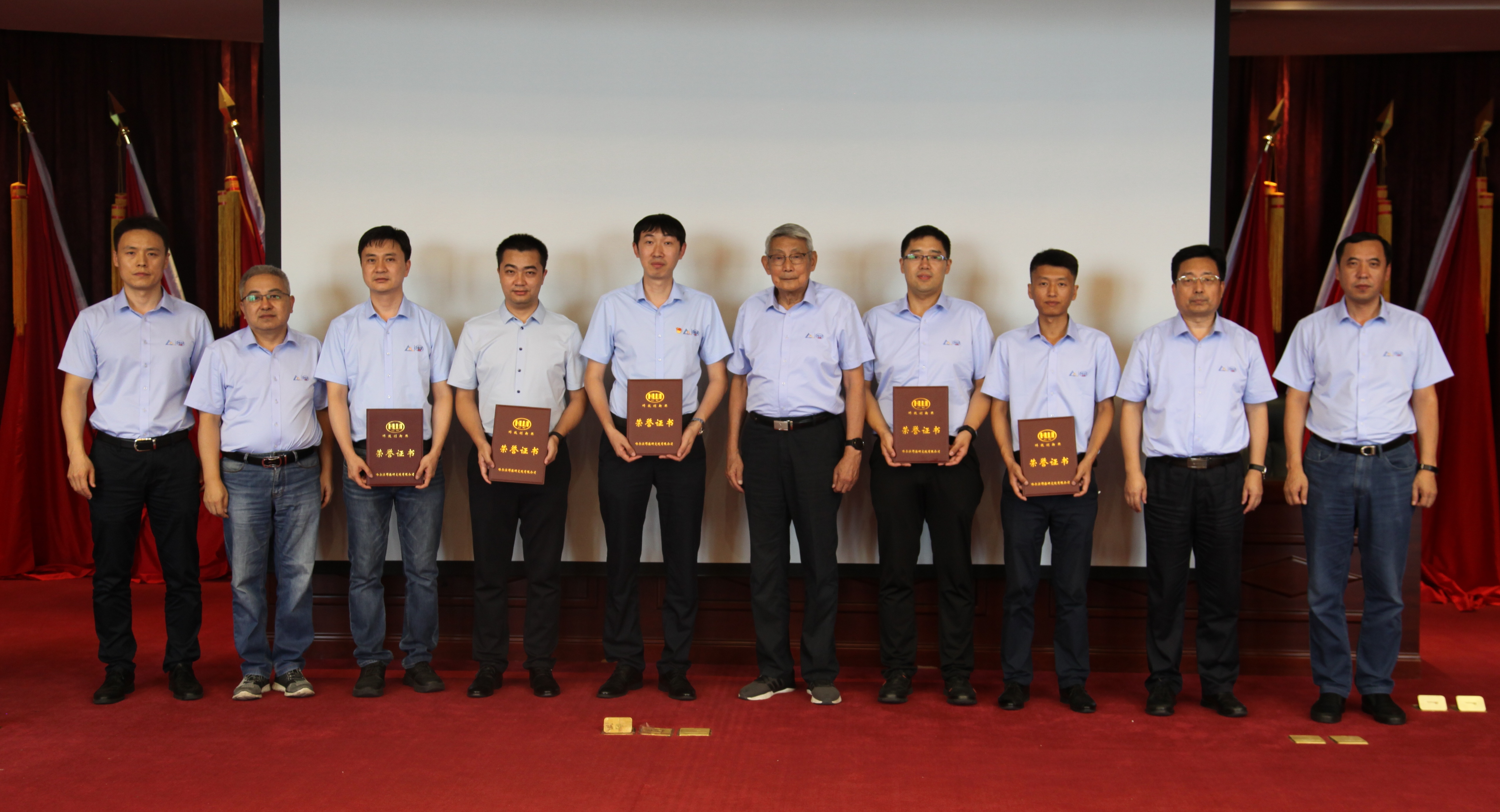會議可謂是一場精彩紛呈的技術(shù)盛宴,經(jīng)技術(shù)委員會初評推薦的九個項目分別進行匯報,與會人員就報告中的有關(guān)技術(shù)內(nèi)容進行了交流探討,現(xiàn)場學術(shù)氣氛熱烈。經(jīng)過技術(shù)委員會和現(xiàn)場科技人員的認真評審,共評出五個獲獎項目:張焱團隊項目榮獲科技創(chuàng)新成果獎,徐富家、王國佛團隊項目榮獲創(chuàng)新應(yīng)用成果獎,郭梟、孫謙作為第一作者榮獲優(yōu)秀論文獎。林尚揚院士和哈焊院主要領(lǐng)導為獲獎?wù)哳C發(fā)了榮譽證書。